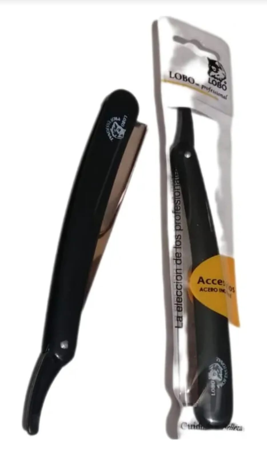 Estética Elegante: Acabado en un sofisticado color negro mate con el distintivo logotipo de Lobo Professional grabado en el mango.